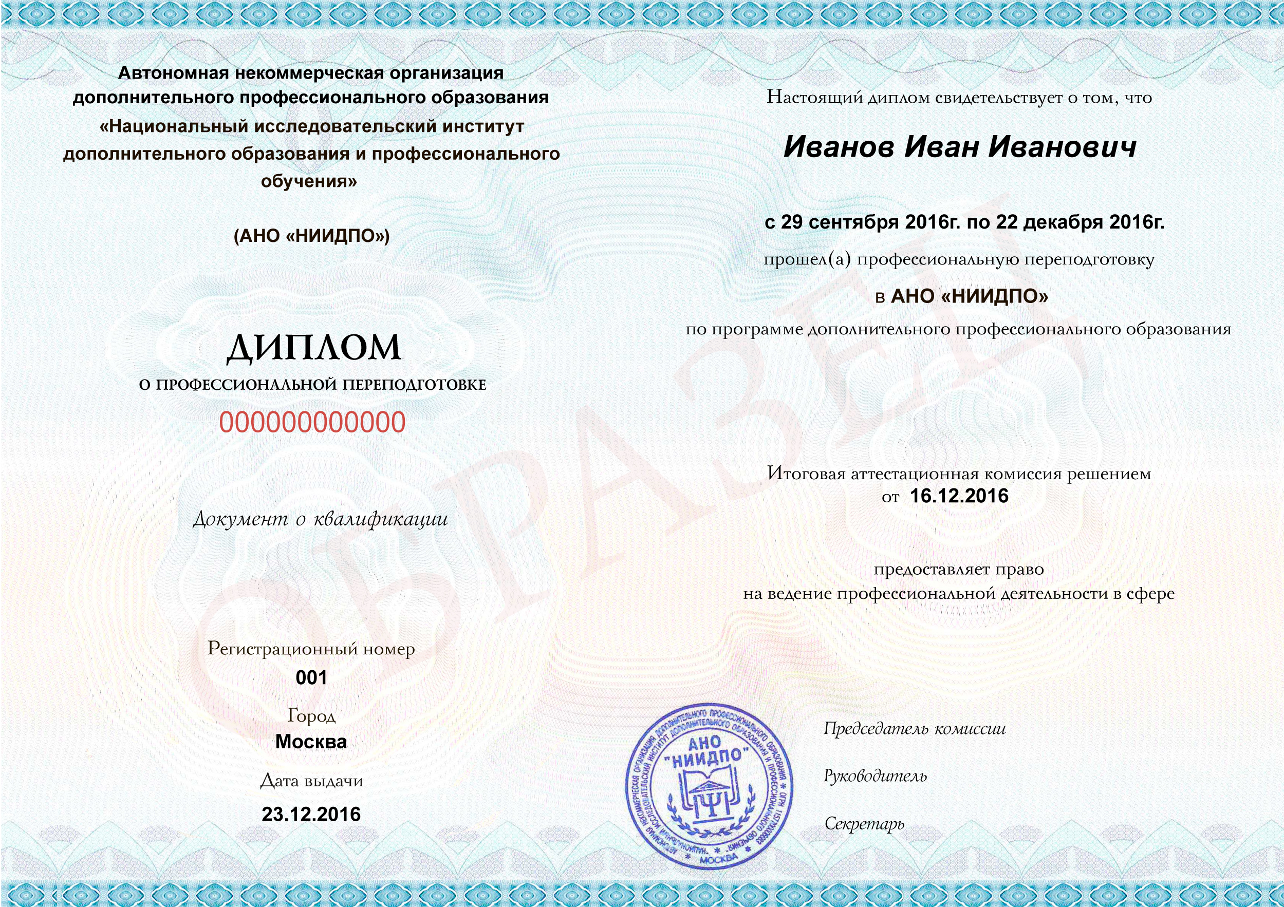 государственного образца о среднем профессиональном образовании (СПО); | установленного образца о профпереподготовке |