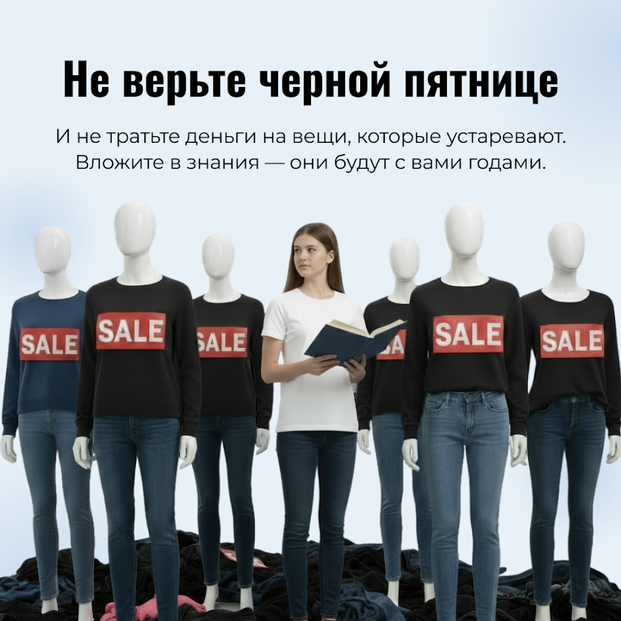 Распродажи в ноябре снова манят скидками на товары, которые быстро устаревают или оказываются ненужными. Мы предлагаем альтернативу: инвестируйте в будущее — приобретите полезные знания без Черной Пятницы, но со скидкой.