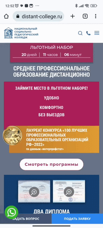 два диплома без увеличения сроков и стоимости обучения. . Программа профпереподготовки – подарок от колледжа. |