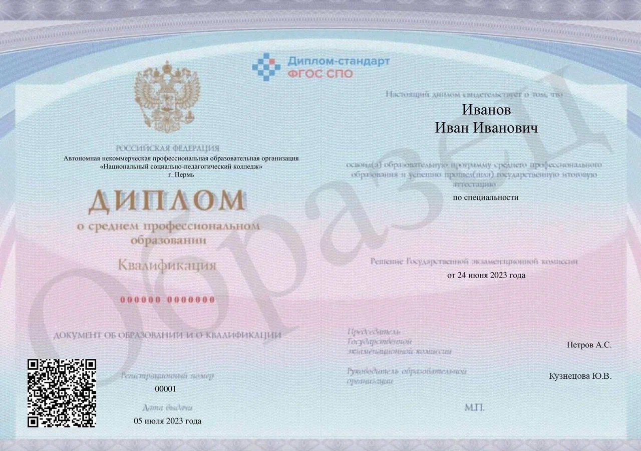 Диплом государственного образца по специальности. С ним можно устроиться на работу или продолжить учебу в вузе, поступив без ЕГЭ.