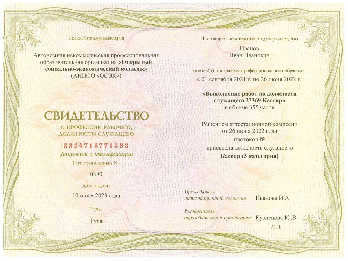 Диплом о профессиональной переподготовке по выбранной квалификации