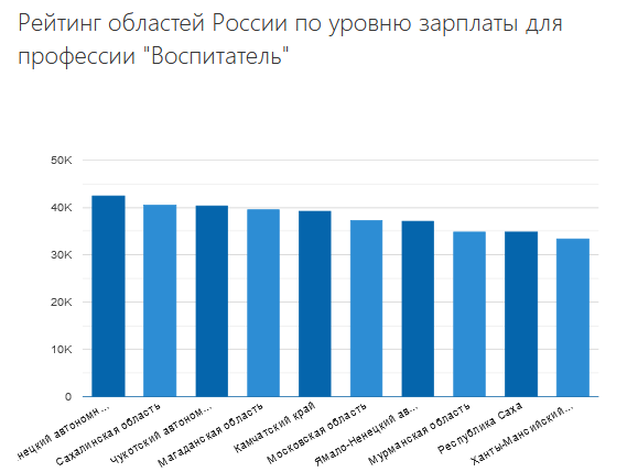 Зарплата специалиста в России — 27 259 ₽ в месяц. В Москве воспитатели зарабатывают, в среднем, 49 360 ₽.