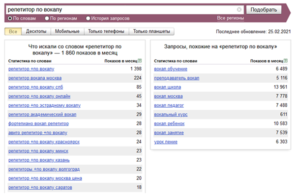 Запрос «репетитор ИЗО» вводят в Яндексе 357 раз в месяц, «репетитор по шахматам» — 739 раз, «репетитор по вокалу» — 1 860 раз.