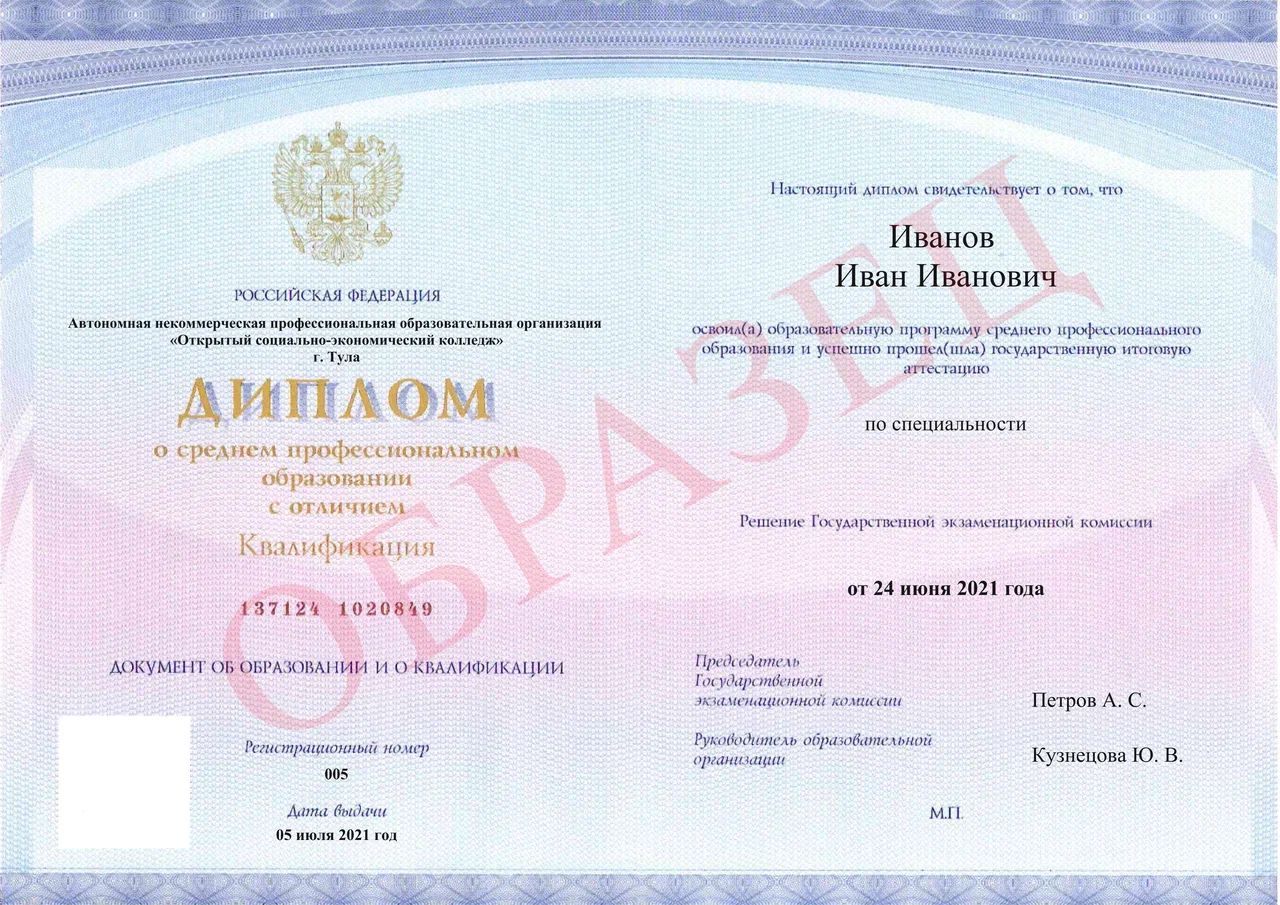 Диплом о среднем профессиональном образовании государственного образцаДиплом о профессиональной переподготовке по выбранной квалификации