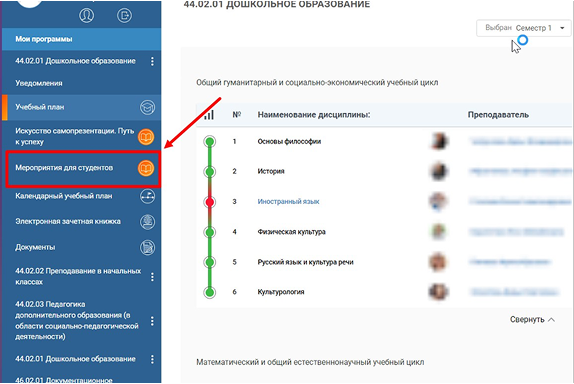 Раздел «Мероприятия для студентов» для творческих и активных студентов